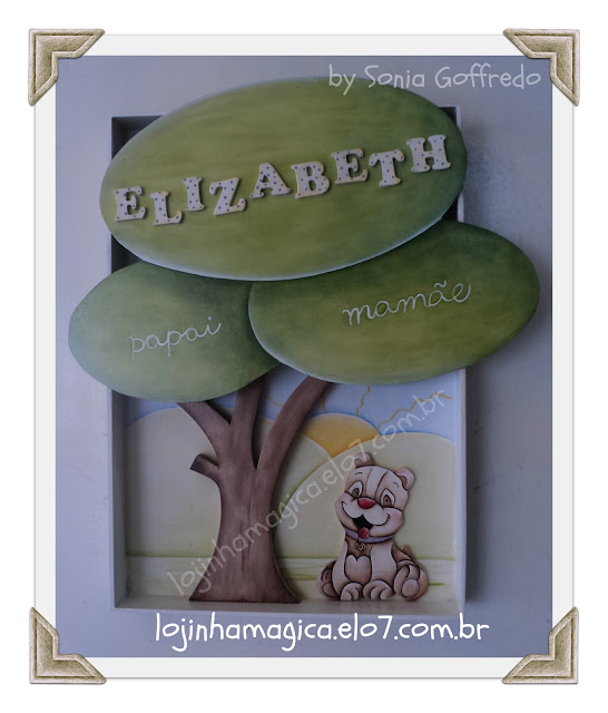 Este é o enfeite de porta, que falta envernizar e colocar o cordão para pendurar. Meu compadre fez o layout, marceneiro "The flash" cortou e a mamys aqui, pintou. Adorei o resultado. Ela ainda não viu, mas espero que goste.